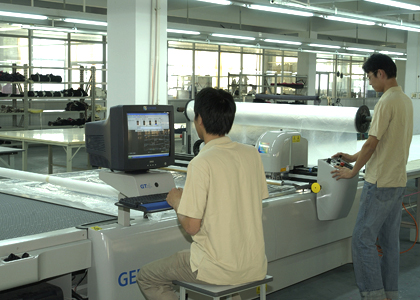 公司采用CAD計(jì)算機(jī)輔助排料系統(tǒng)進(jìn)行排料,該系統(tǒng)準(zhǔn)確、高效。鋪料機(jī)代替手工鋪料的優(yōu)點(diǎn)使鋪料均勻、整齊、松緊適宜、降低工人勞動(dòng)強(qiáng)度。
